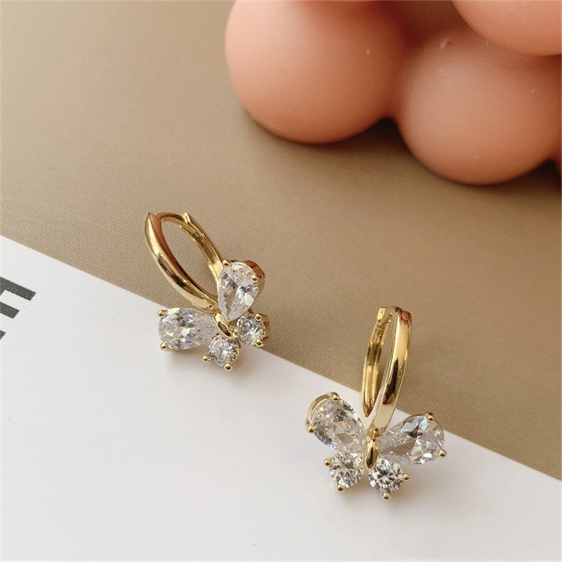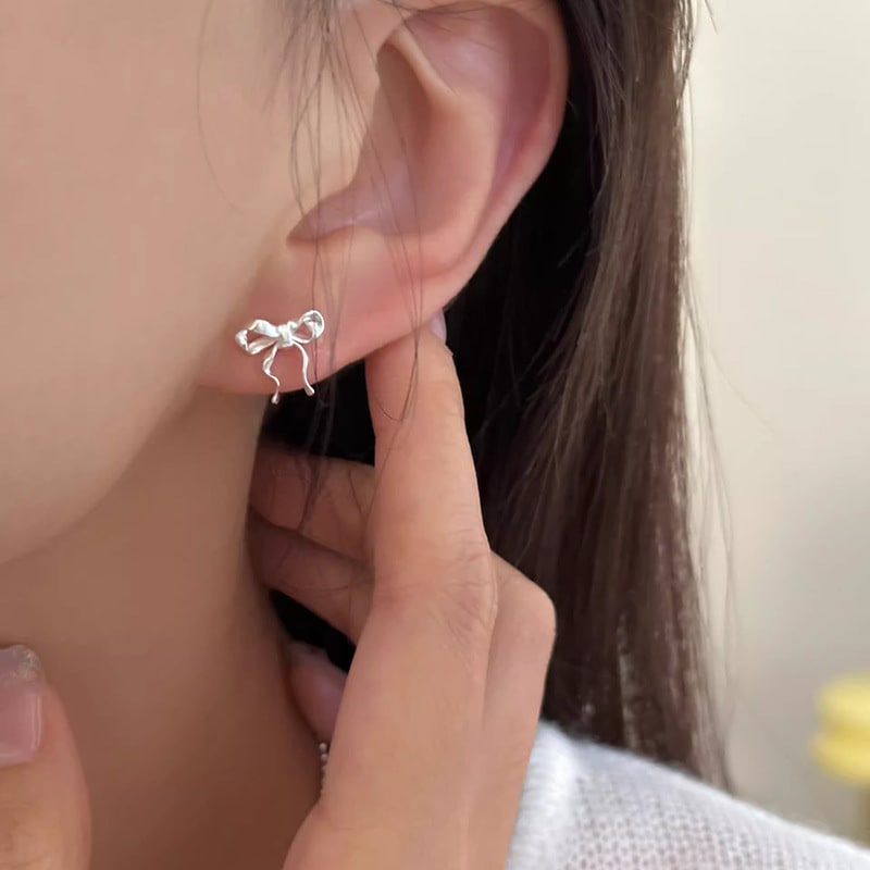 冬のピアス 韓国ファッション クリスタルリボン耳掛け甘め風耳輪おしゃれイヤリング 個性 百掛け ピアス 金属アレルギー対応 軟骨ピアス イヤリング