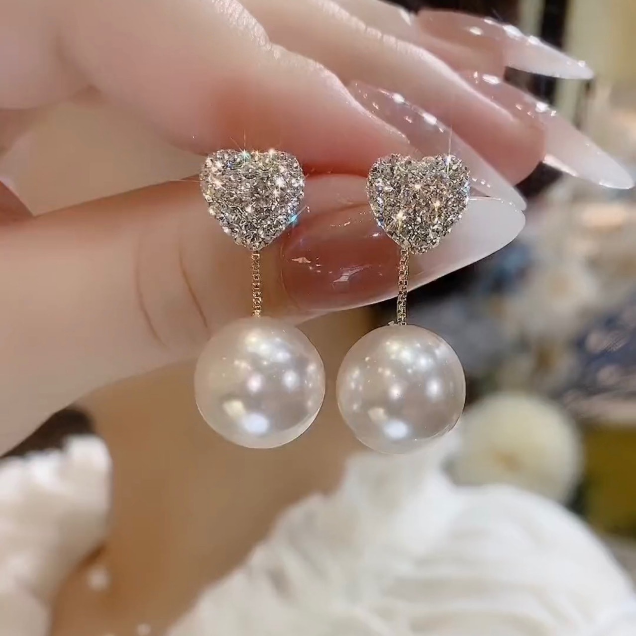 ピアス925シルバー針センス真珠ダイヤモンド愛のイヤリング韓国のファッション2摩耗気質エレガントなイヤリング女性 ピアス