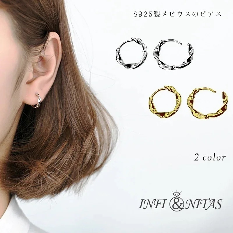 韓国ファッションピアス イヤーカフ s925銀 永遠の愛 メビウス フープピアス ピアス キラキラ 両耳用 ピアス