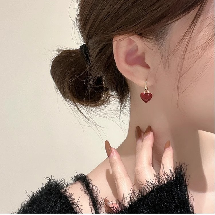 ファッション 冬のピアス S925シルバーピン ワインレッド ハートイヤリング レディース ピアス エレガントでシンプル アクセサリー 小人数のデザイン感