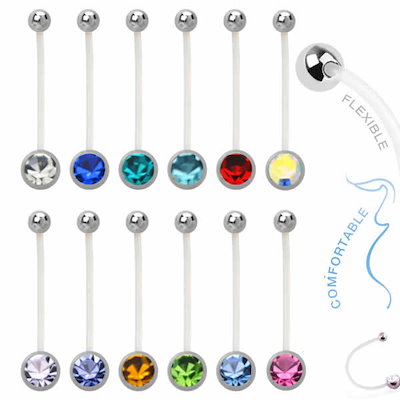 4枚セット テフロン へそピアス 妊婦用 14ゲージ 14G 臍ピアス ヘソピアス ボディピアス 内径が長い 短い 出産祝い 妊娠 マタニティ ホールケア ファーストピア