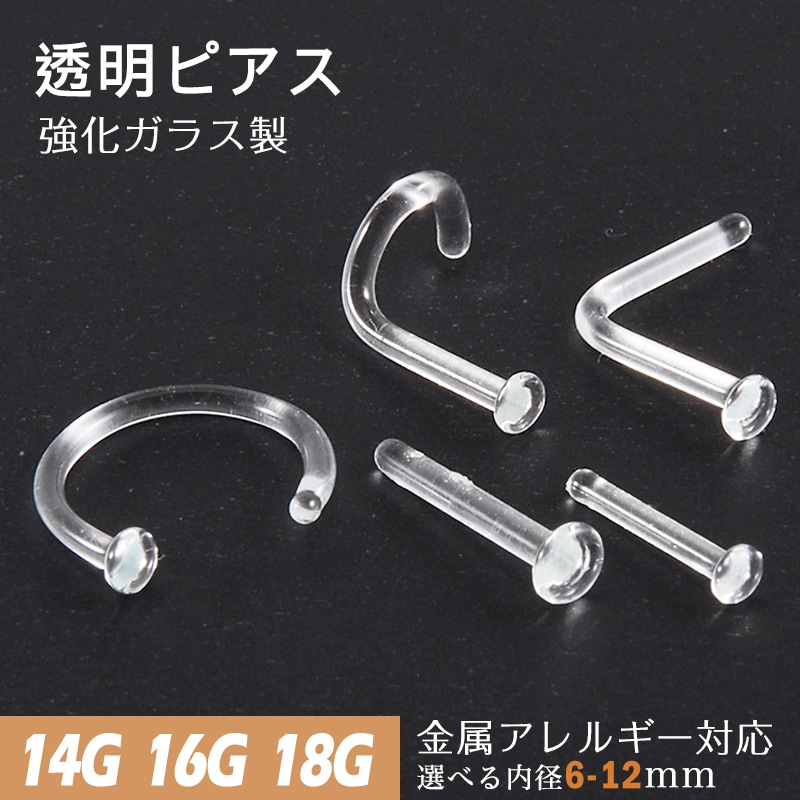 透明ピアス 18G 16G 14G 強化ガラス 片耳用 素材 リテーナー つけっぱなし ピアス 透明 クリア 耳たぶ ボディピアス 軟骨ピアス へそピアス 金属アレルギー対応 ガラスピアス