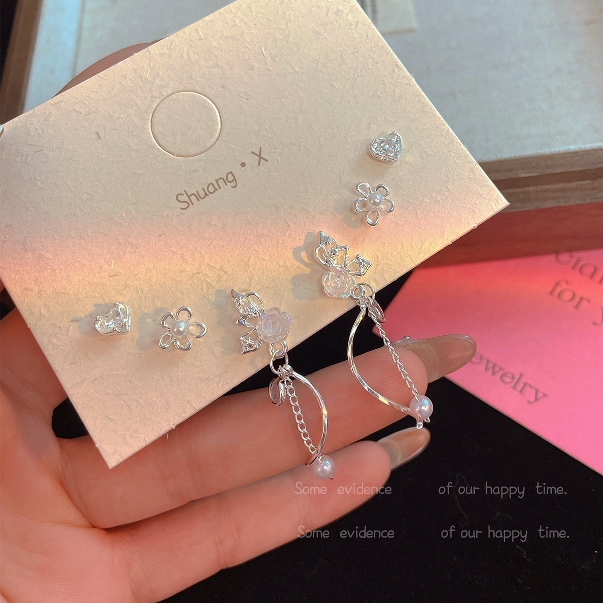 6枚セット s925銀 アレルギー対策 色落ちしない高級感 ピアス ハート キュート 韓国ファッション ピアス イヤーカフ ピアス女の ピアス