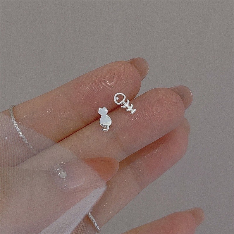 3日出荷 2個セットイヤースタッド イヤリング ピアス 魚の骨 ネコ匹 レディース シルバー 韓国 フラワーズ 軟骨ピアス ピアス