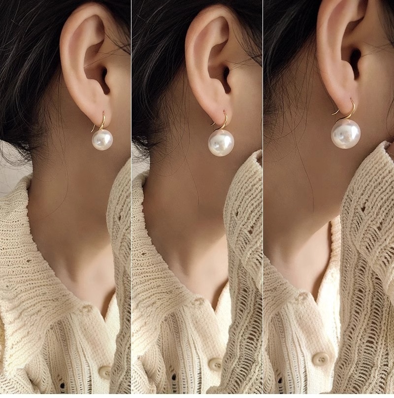 ピアス 16 mm大パールイヤーフック14 kゴールドピアスレトロな雰囲気の秋人気のピアス ピアス