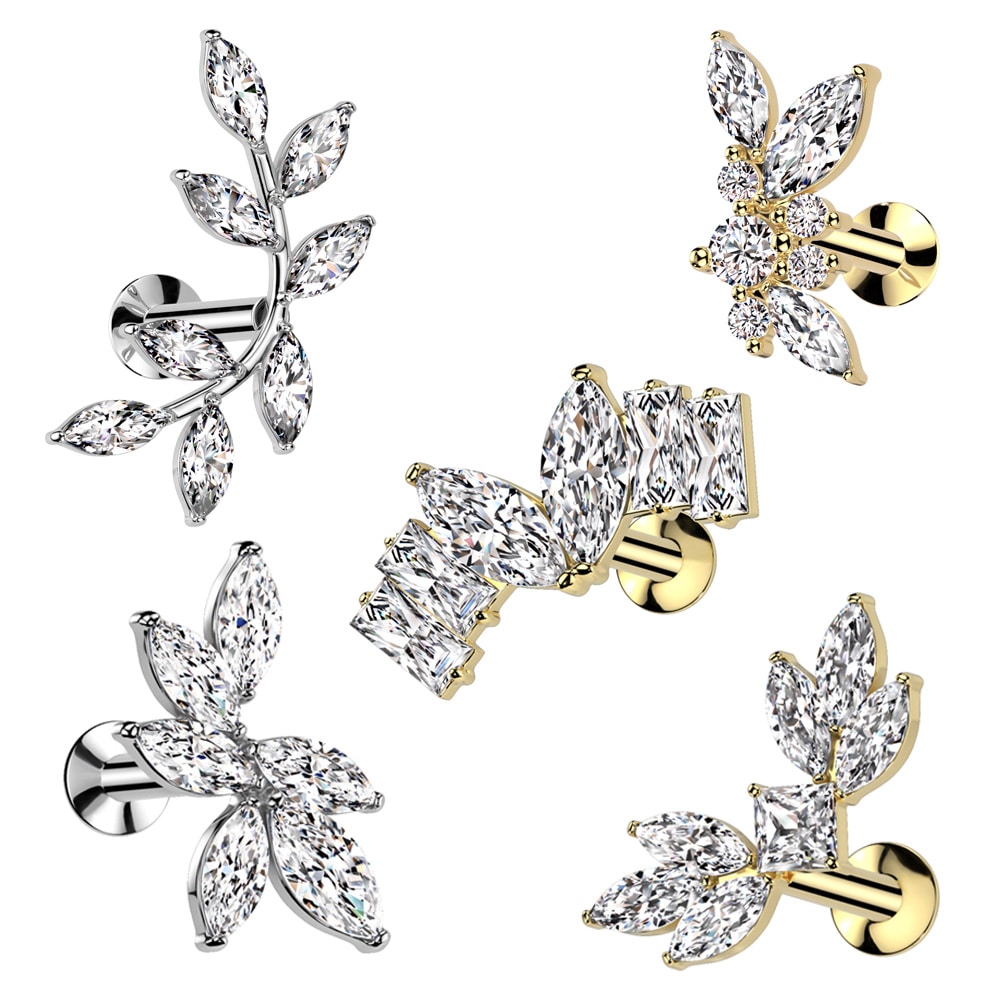 ボディピアス16G 18G ラブレットスタッド ジュエル マーキース ハート ウイング 羽根 リーフ 葉 ヴァイン 蔓 プッシュ ワンタッチ ヘリックス