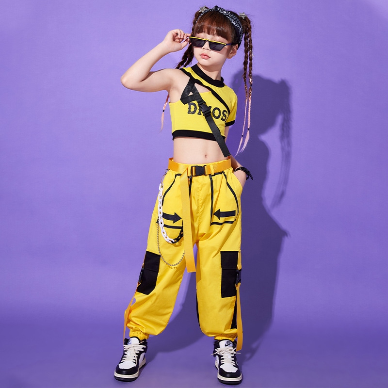 キッズダンス衣装 K-POP 練習着 ヒップホップ 女の子 長袖トップス サルエルパンツ シマウマ 発表会 演出服 ダンスウェア 個性 ダンスパンツ イエロー
