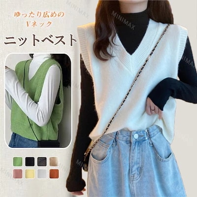 ニットベスト レディース チョッキ トップス Vネック ノースリーブ ゆったり プルオーバー ベスト ジレー セーター 無地 秋コーデ カジュアル