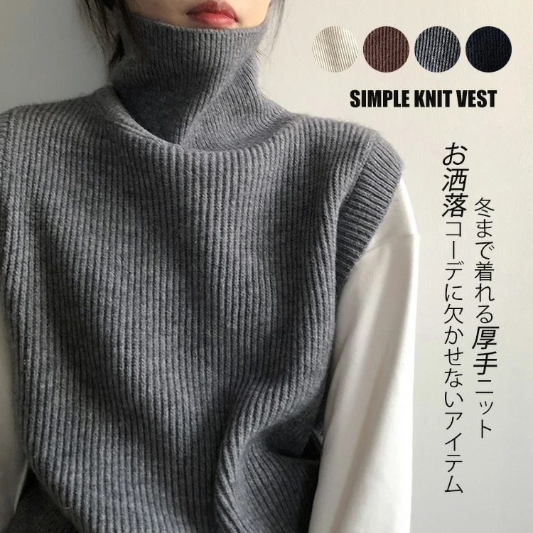 ニットベスト レディース 秋冬 ハイネック ニット ベスト タートルネック トップス ノースリーブ 大きいサイズ リブ ニットトップス セーター 重ね着 ニットセータ