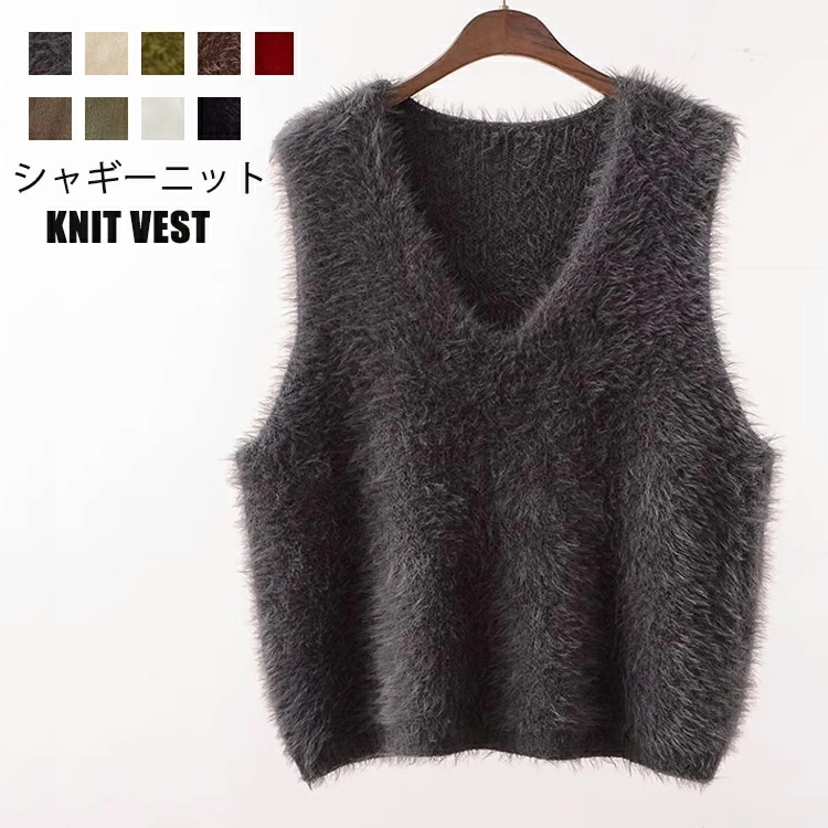 シャギー ベスト ニットベスト レディース 秋冬 シャギーニット シャギーベスト ベスト ニット Vネック レイヤード シャギー ジレ トレンド トップス 毛足長め モヘア プルオーバー セーター ノ