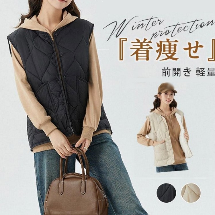 ダウンベスト レディース ベスト ジャケット ダウン コート 裏起毛 羽毛ベスト 暖かい 前開き 軽量 着痩せ 秋冬 ベスト