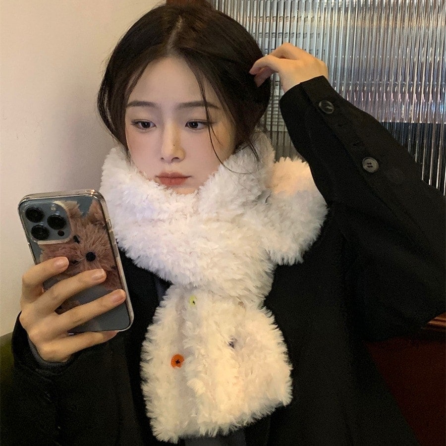 スト一ルマフラ一 韓国ファッション ボタンプラッシュ スカーフ 秋冬厚手防寒 ふわふわ ハット 学生スカーフデイリーマフラー マフラー
