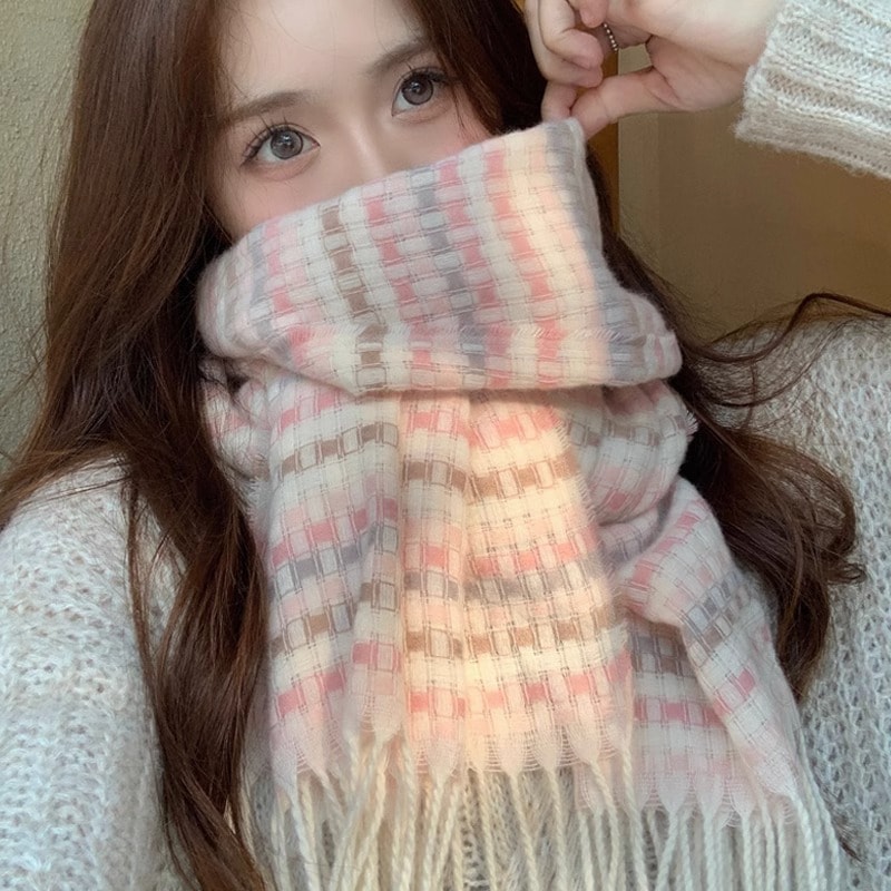 デイリーマフラー 2025秋冬新作カシミヤマフラー ins 新品 寒さ対策カップル厚手 保温ストール 新しいマフラーストールストライプチェック レディース ファッションアウター
