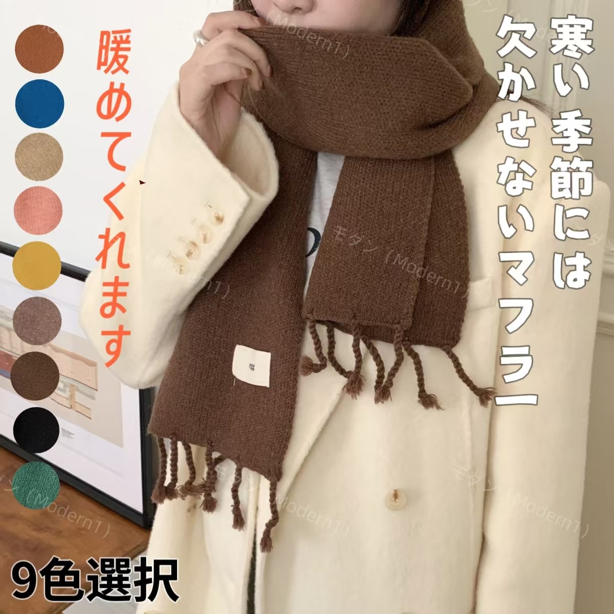 デイリーマフラー 百ヒッチニットマフラー女性の冬の雰囲気の純粋な色の新しい韓国語版シンプルでソフトな暖かい怠惰な風の小さなスカーフ マフラー