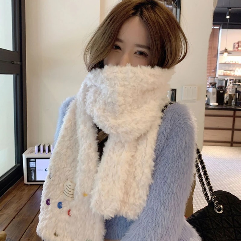 2024年の新型は首を厚くして甘い学生の韓国版ストール両用である ミルクの白いマフラーの女性は冬に保温して マフラー