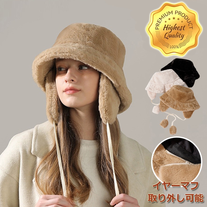 バケットハット レディース イヤーマフ付き 帽子 秋冬 ファー もこもこ 暖かい 帽子 小顔効果 無地 防寒 大きいサイズ 洗える