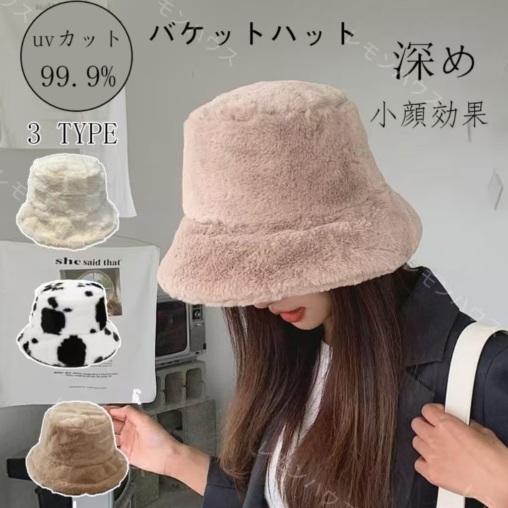 小顔効果 ファーバケットハット ハット 帽子 バッグ・雑貨