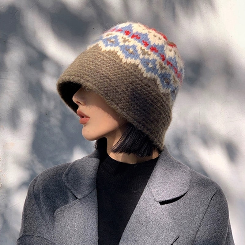 秋冬新作 流行り ニット帽子 冬 韓国ファッション色切り替え ニットバケットハット 防寒 ウォーム 帽子 レディース 百掛け 小顔効果 帽子 秋冬 ハット