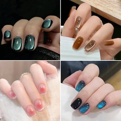 3Dネイルチップ つけ爪 韓国 光線療法 黒 ピンク 手作り キャッツアイネイル 1秒簡単貼れる 韓国ファッション ネイルチップ ショート ロング 短め 長い 可愛い シンプル ジェルネイルシール