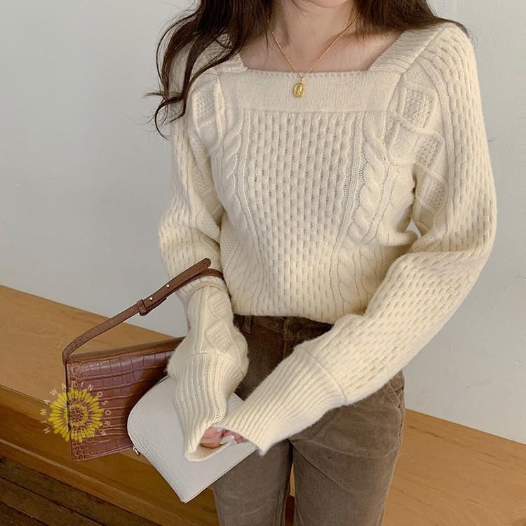 人気なリブニット ニットセーター レディース 春秋冬 ニットソー 長袖 スクエアネックセータートップス ショット丈 ニットセーター ゆったり ニット 韓国風 大人可愛い 着痩せ