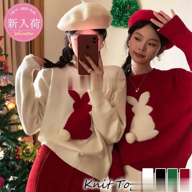 人気なリブニット ニットトップス レディース 秋冬 40代 長袖セーター うさぎ刺繍 ショット丈セーター ゆったりプルオーバー オシャレ韓国風 大人ニットインナー 厚手 兎 30代