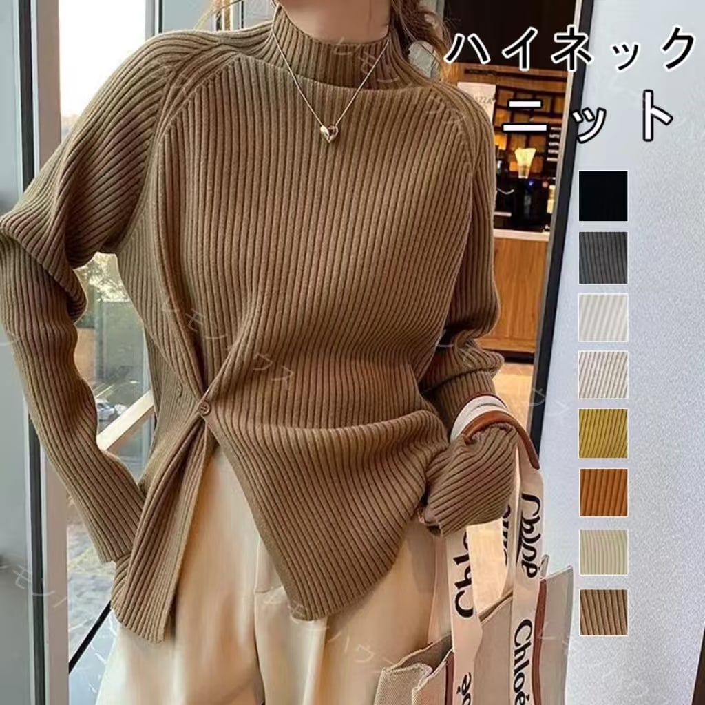 秋冬 百掛け ハイネックニット セーター レディース 韓国ファッション シンプル無地百掛け 韓国ファッション 怠惰な風 ニットトップス タートルネック ゆったり 大きいサイズ