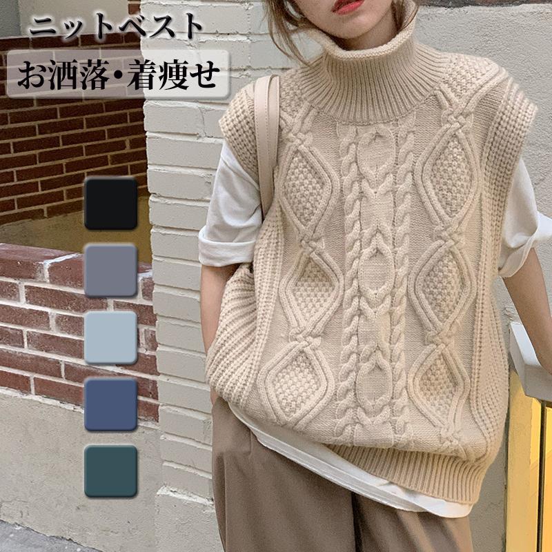 トップス 通勤 レディース ノースリーブ ニットベスト 無地 重ね着 カジュアル ハイネック 体型カバー ゆったり 着痩せ 韓国風 おしゃれ