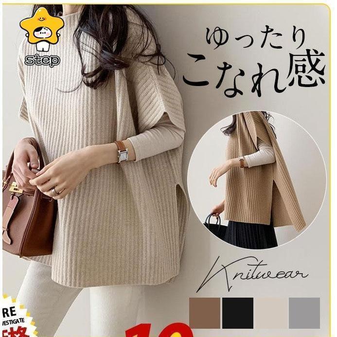 CHUNKY 卒業式 母 ベスト ニットベスト レディース ポンチョ ローゲージニット チャンキー ゆったり プルオーバー ジレー セーター 秋物 レイヤード フレンチスリーブ