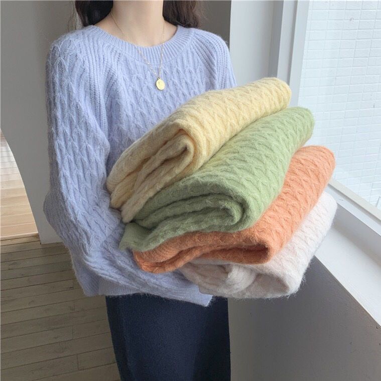 人気なリブニット 韓国ファッション カシミヤタッチニットセーター トップス ニットインナー ベーシックニット丸ネックゆったりリブニット ニット
