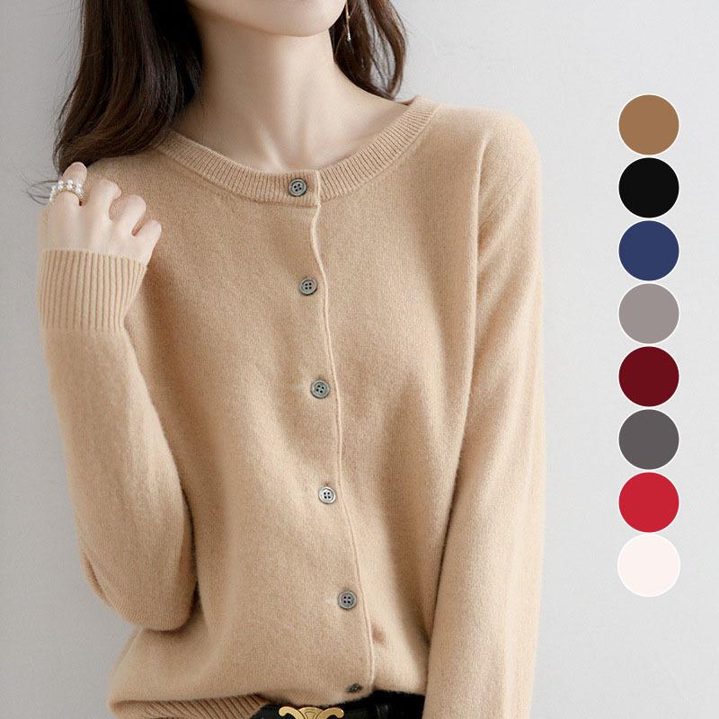 ニット カーディガン 綿100% ネック ニット トップス レディース服