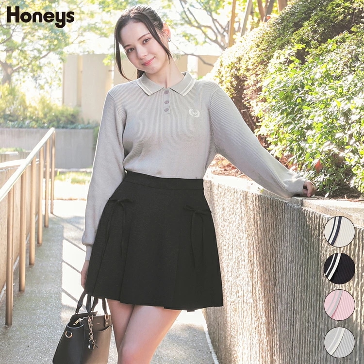 Honeys 衿付ニットトップス トップス ニット セーター 長袖 衿付 刺繍 ワンポイント ガーリー ニット