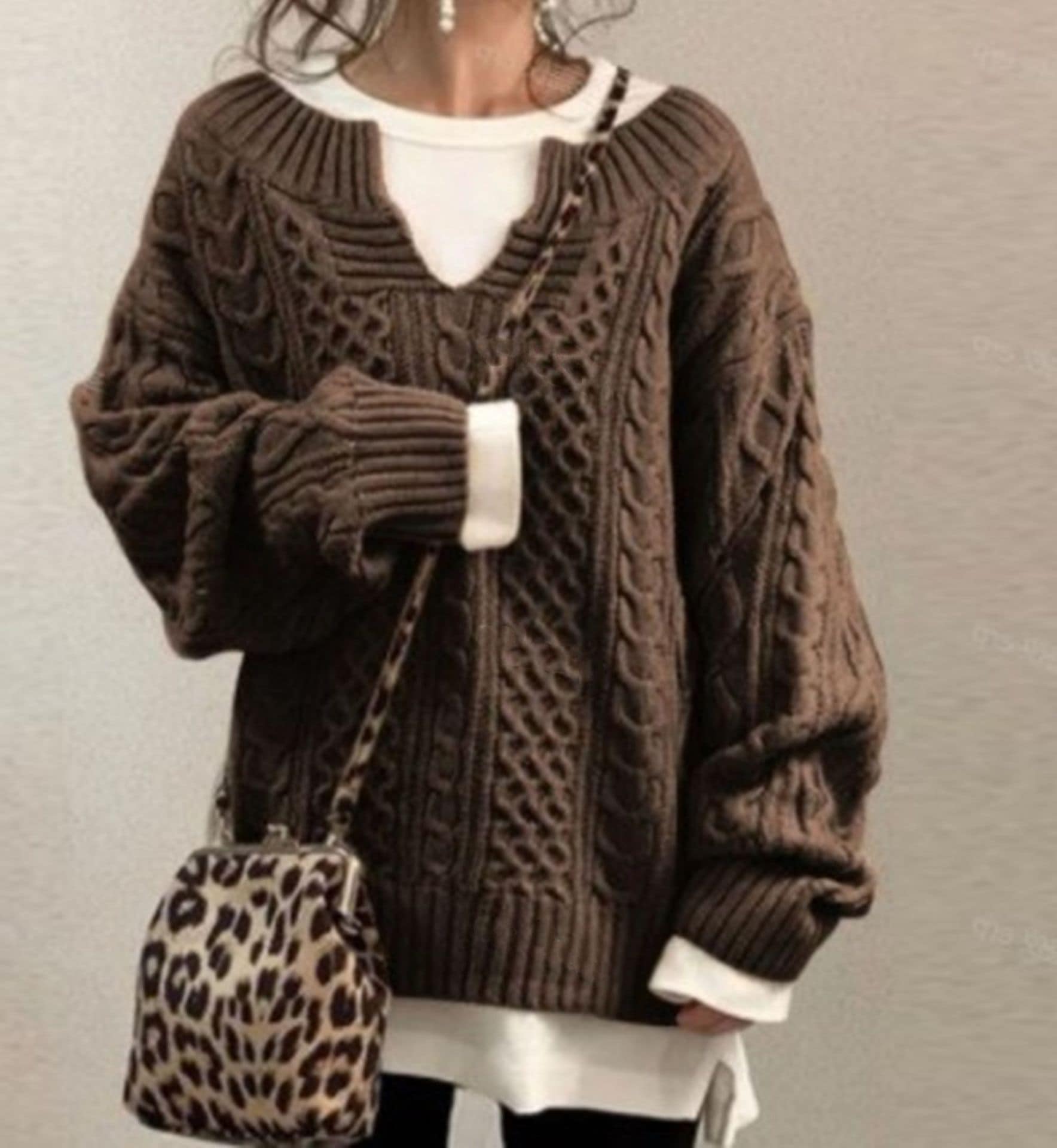 高級グレーvネックマーブルアライグマのダウンセーター女性秋冬冬厚くだるくてモチモチしたウールニット ニット
