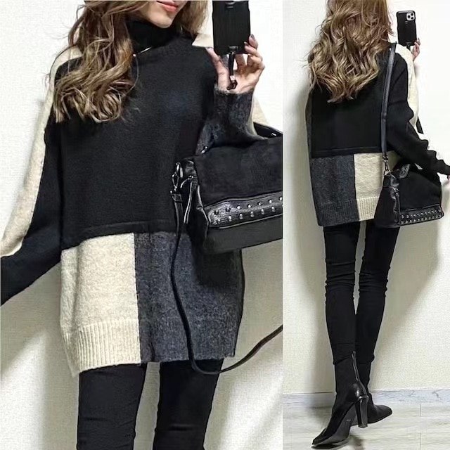 日系2024秋冬新品 ハイネック アンダーウェア セーター レディース 高級感 カジュアル ベーシックニット インナー ゆったり カシミヤタッチ ショット丈 トップス アウター