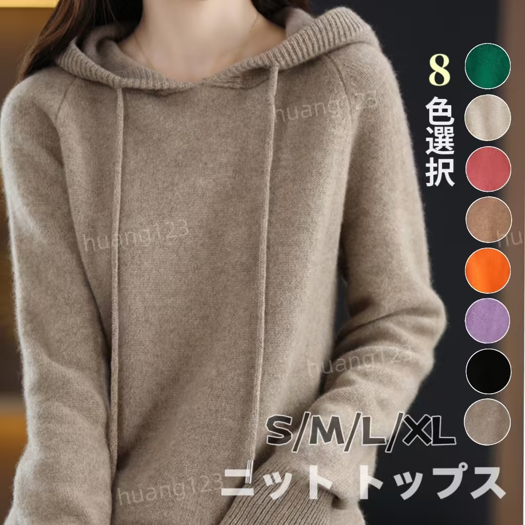 品質UP 人気なリブニット 初秋 冬 ベーシックニット カシミヤタッチフード付きニット トップス 無地百掛けセーター レディース 怠惰な風カ20代 30代 40代 長袖トップス ニットセーター