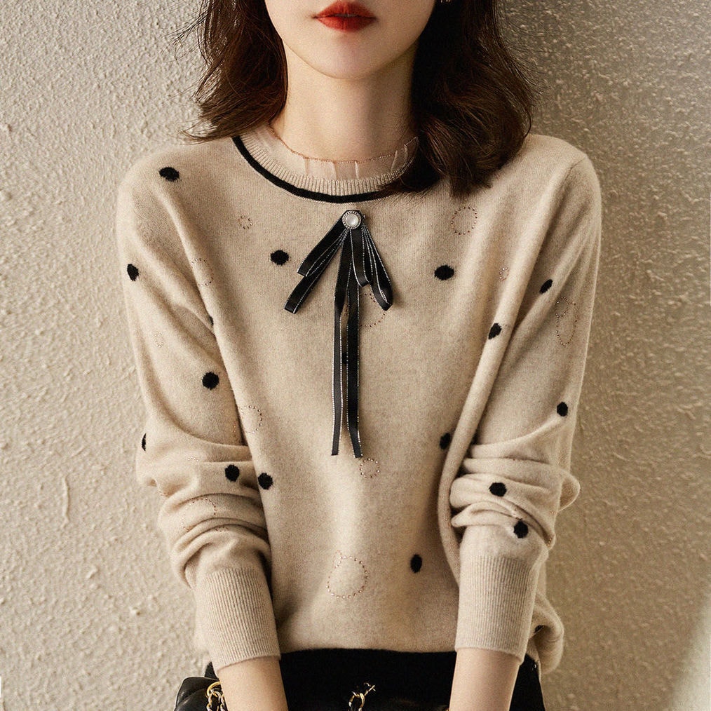 ニットセーター レディース ニットセーター レディース 秋冬 40代 長袖 トップス ドット柄 リボン セーター ショット丈 ニットソー ゆったり プルオーバー 韓国風 オシャレ