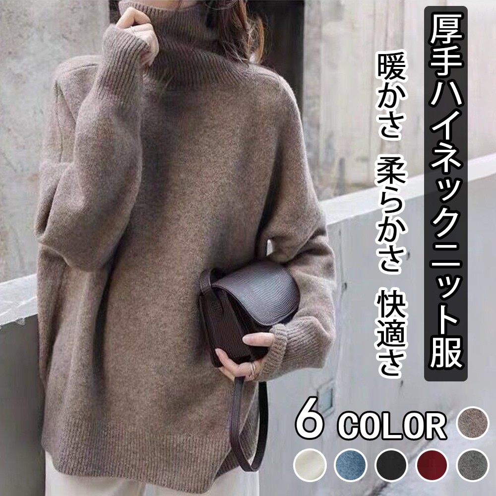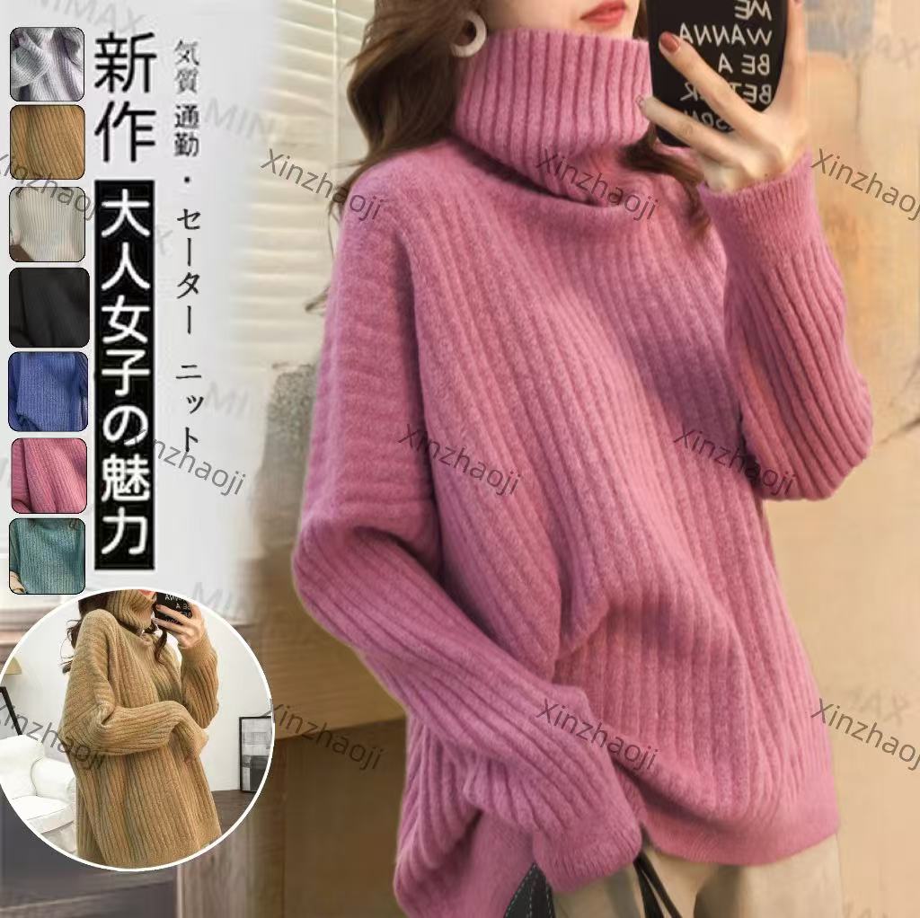 着るだけモテニット 厚手ハイネックニット服セーター女性ルーズレイジーウーセーター ハイカラー大サイズ無地厚手シャツ ニット