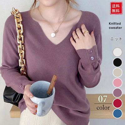 2点購入200 OFF 2024新作韓国ファッション秋冬ニットTシャツ 7カラー秋ニット レディース 無地 ニット プルオーバー リブニット トップス