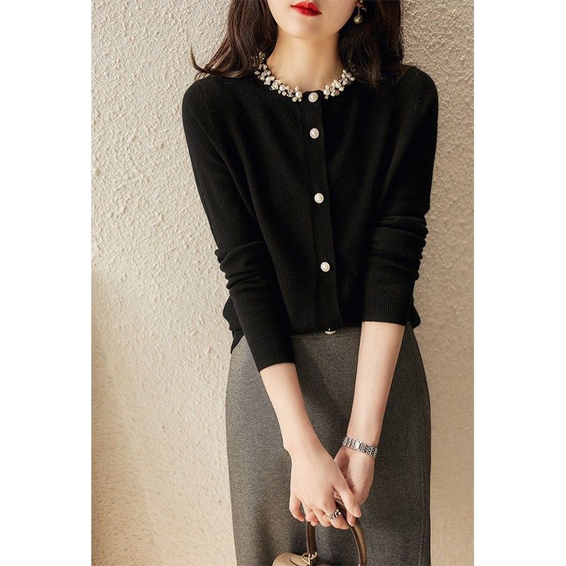 目玉商品超人気 ニットカーディガン レディース 秋冬 長袖ニットトップス 黒コーディガン パールネックカーディガン セーター ゆったり アウター 秋服 おしゃれ 上品