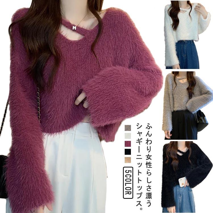 超目玉新品 シャギー ニットセーター レディース ふわふわニット ふんわり リブニット クロップド丈 ショート丈 シャギーニット ファー 伸縮性 ストレッチ ゆっ