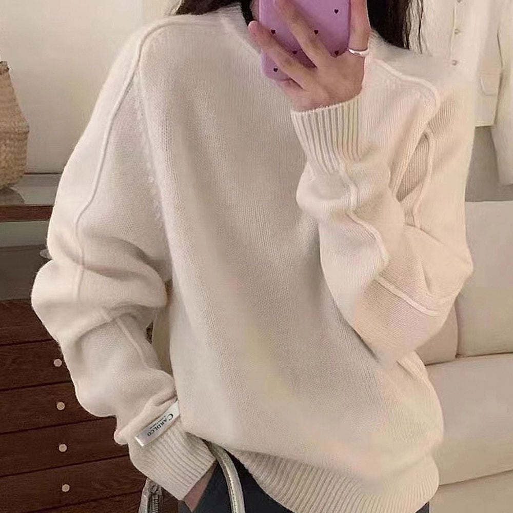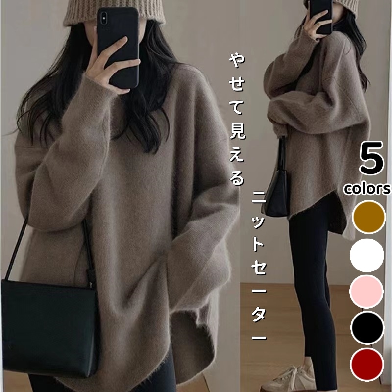 6colors 丸ネック新作秋冬厚手ニットセーター ゆったりニット長袖トップストップスラウンドネックニットカシミヤタッチ トップス ニット