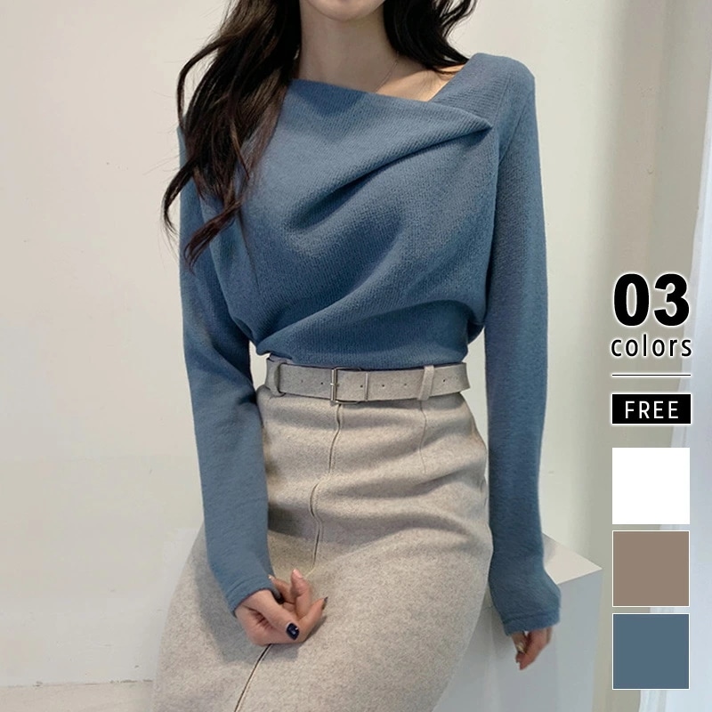 イレギュラーネックニット オフィスカジュアル きれいめニット ニット イレギュラーネック きれいめ 長袖 トップス レディース アシンメトリー プルオーバー ニットセーター シンプル