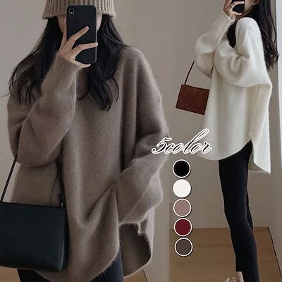 厚手 ハイネックニット 服 セーター 女性 ルーズ レイジーウ ーセーター ハイカラー 大サイズ 無地 厚手シャツ 韓国 ファッション ニット