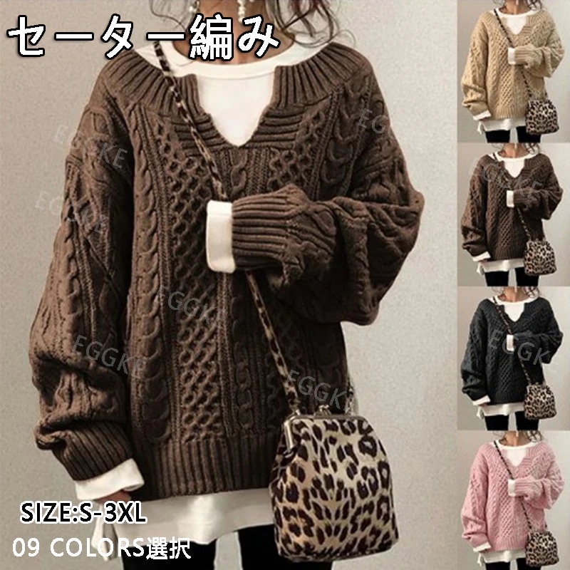新品セーター ニット レディース 編み 長袖 無地 トップス ゆったり 大きいサイズ 洗える ニット