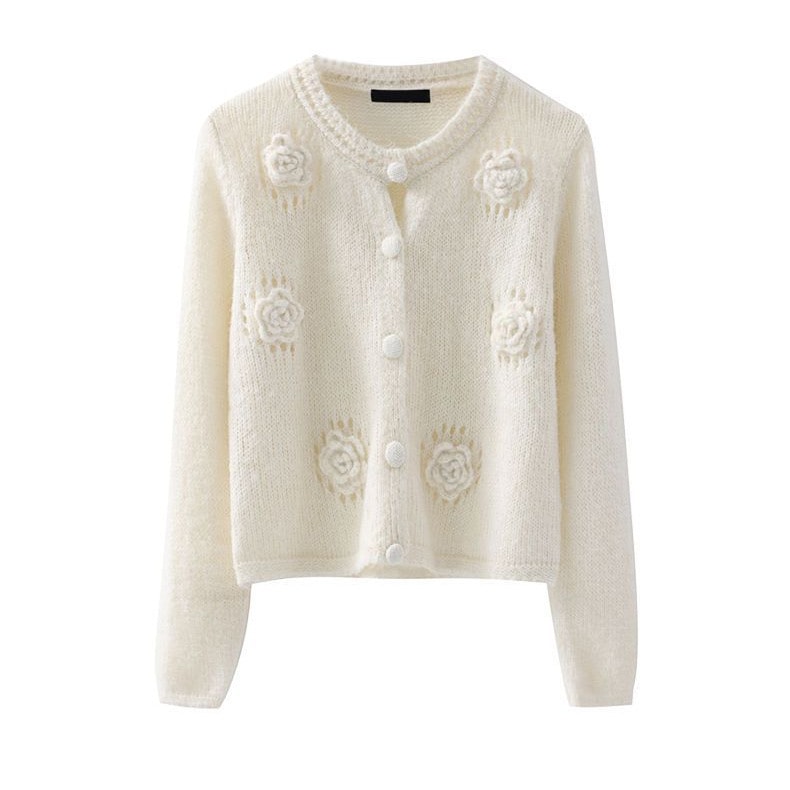 純色立体花セーターコート女装2024春秋の新型怠惰風小柄ニットカーディガン女 ニット