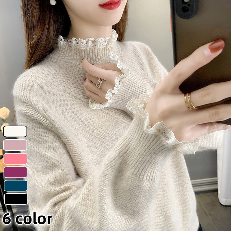 人気なリプニット レースアンダーウェア 秋冬 裹起毛 長袖トップス ハイネックセーター レディース ニット