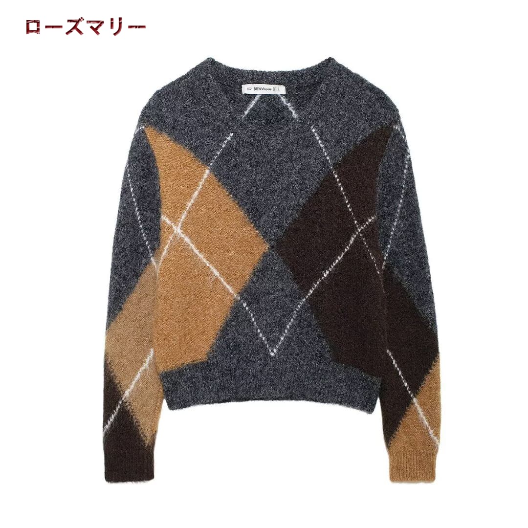ローズマリーソワール 欧米風2024.10.09 秋冬 新作 ゆったりカジュアルチェックのニットセーター ニットトップス ルーズトップス 2409442
