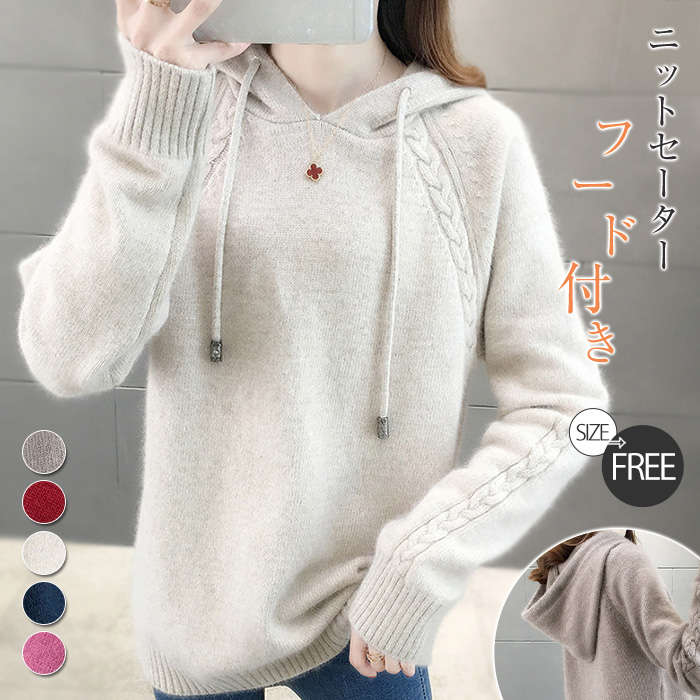 ニットセーター レディース 秋冬 40代 長袖トップス 無地 ニットトップス ニット セーター フート連れスウェット フード付き ニット ショート丈 プルオーバー ゆったりセーター カジュアル オシャ