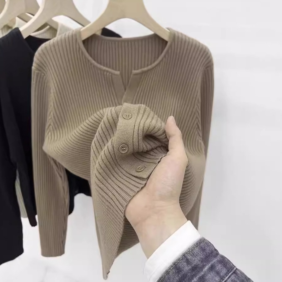新作シンプル 気質 通勤 セーター 着痩せ ベーシックニット ラウンドネックニット 長袖 Vネック ニット トップス
