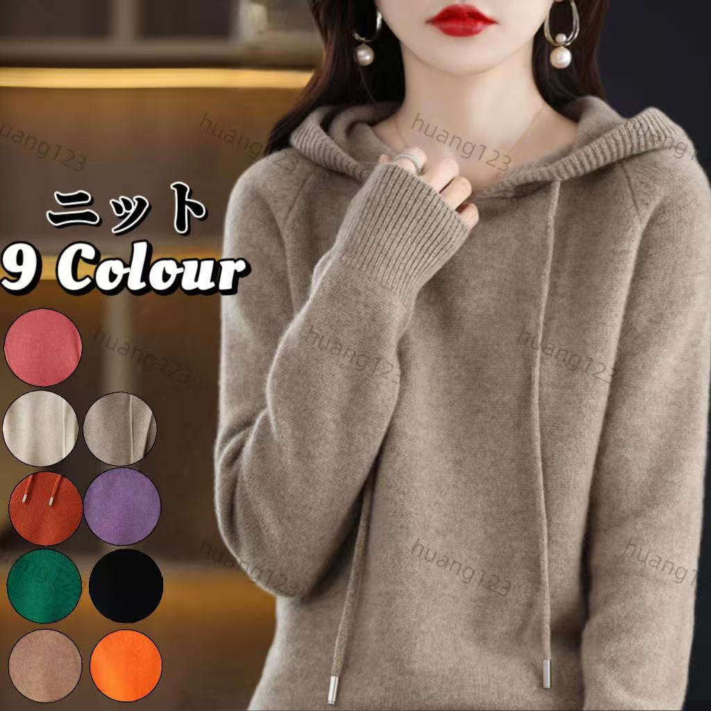 初秋ベーシックニット カシミヤタッチフード付きニット トップス 無地百掛けセーター レディース 怠惰な風カジュアルスウェットニット 20代30代40代 長袖トップス ニットセーター