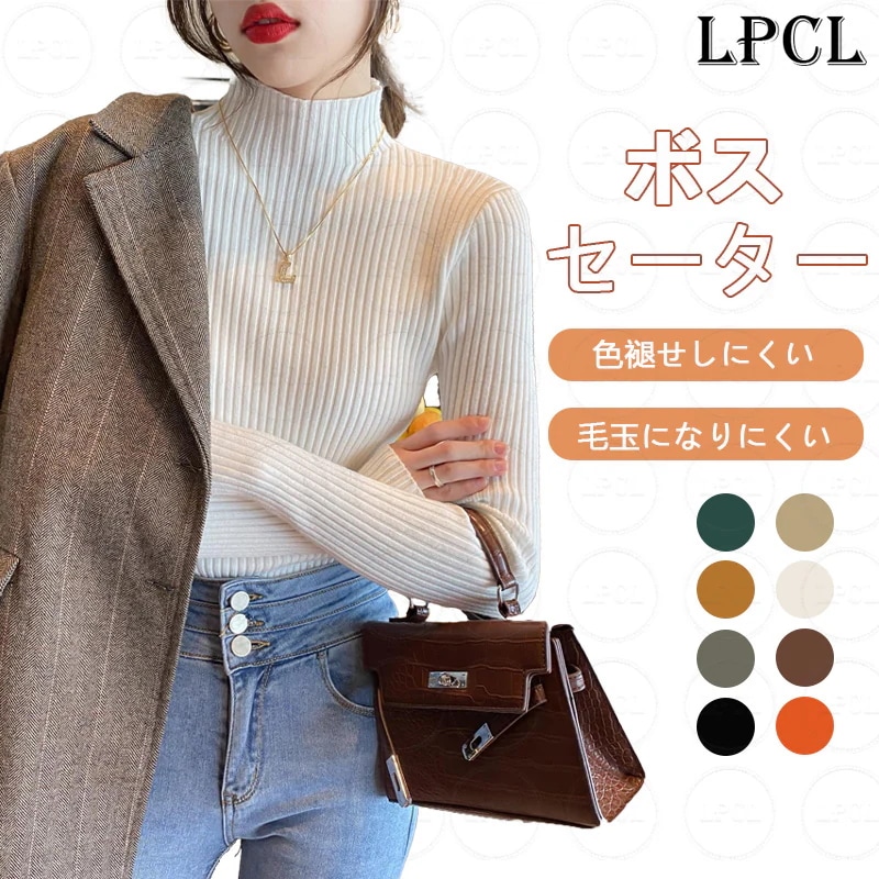 ニットセーター リブニット ストレッチ プチハイネック 長袖 レディース リブプチハイネック プチタートルネック トップス セーター リブ ハイネック 伸縮性 暖か